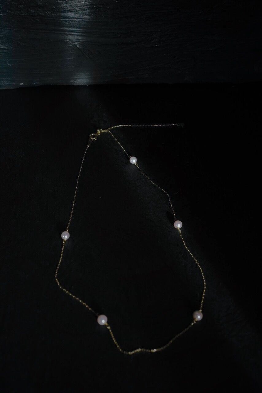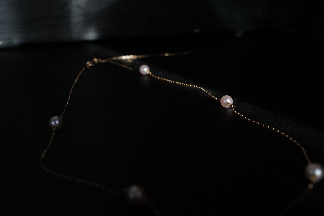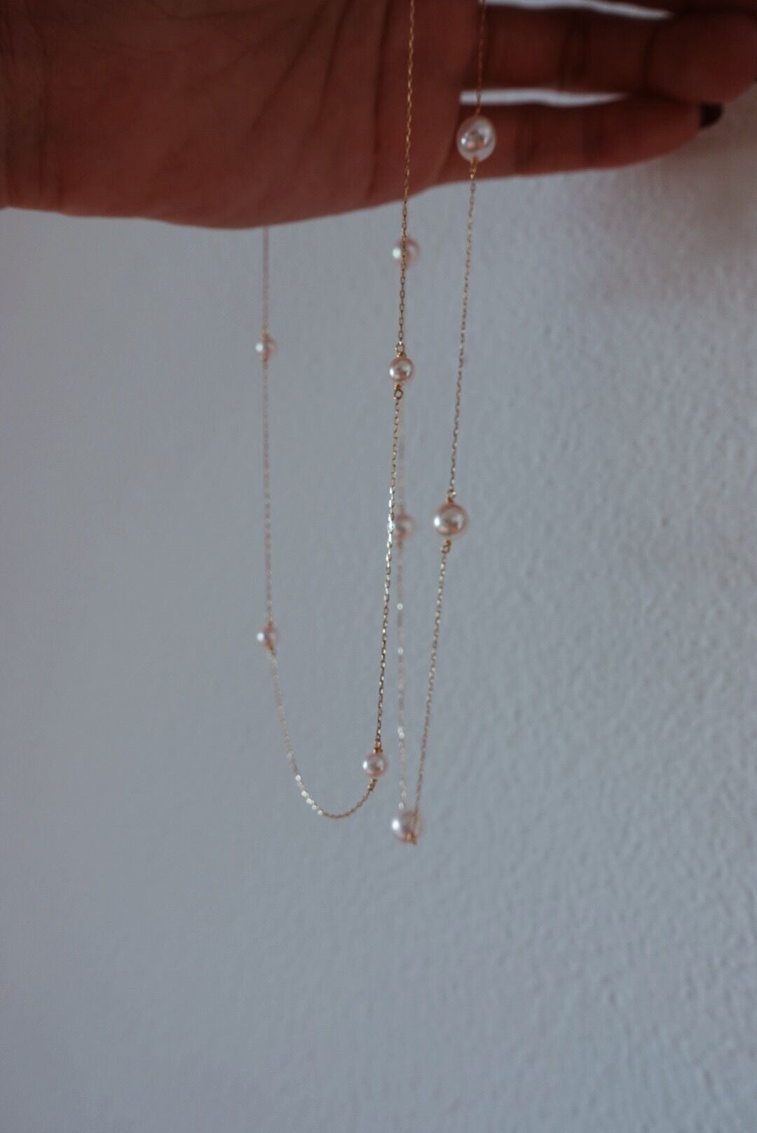 チェーンとほんのりピンクがかったパールの
