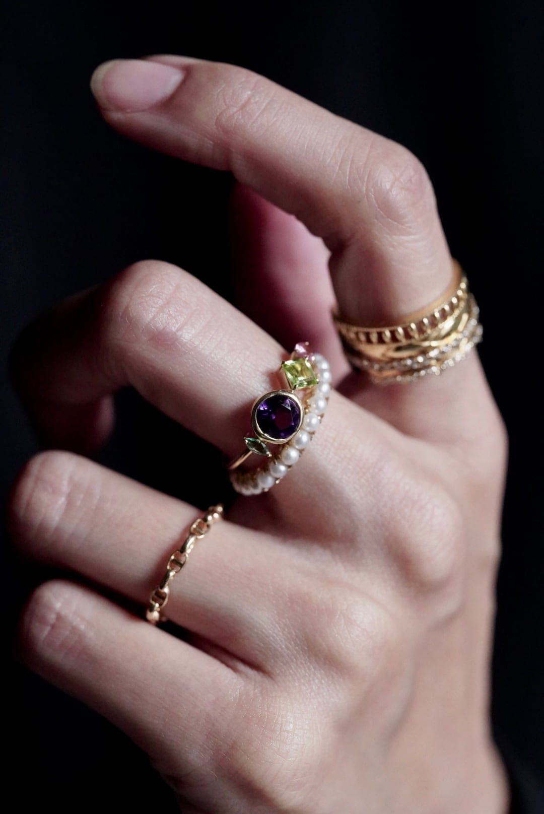 4種類の石をリズミカルに横並びにしたデザイン